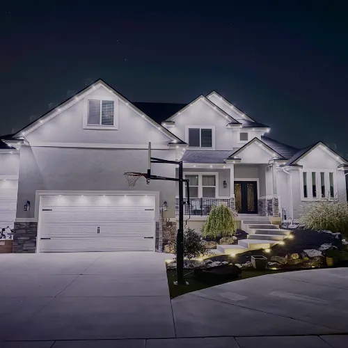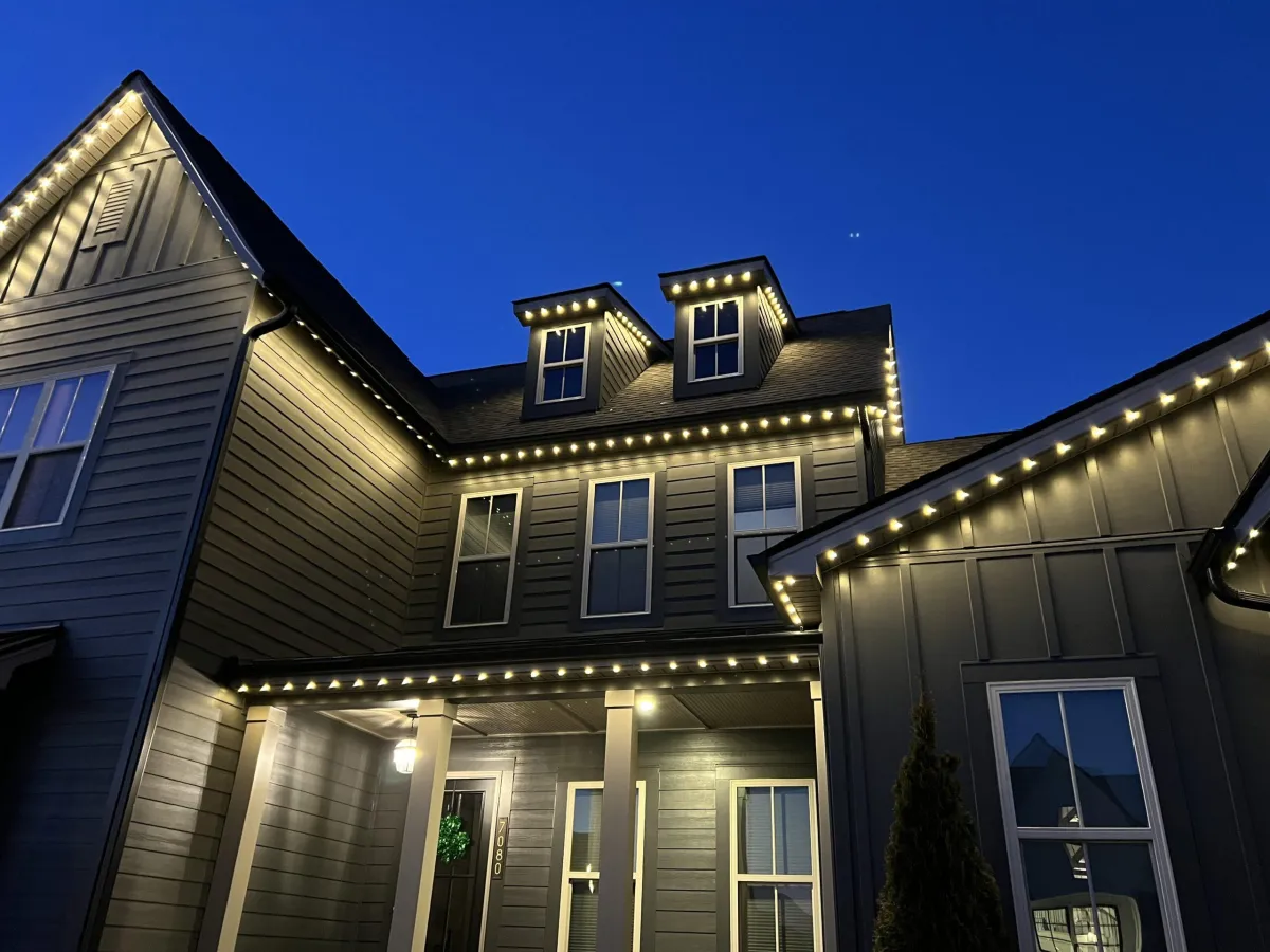 Permanent lighting is a weatherproof, low-profile LED lighting system installed along your roofline or architectural features—designed to stay up year-round without maintenance.