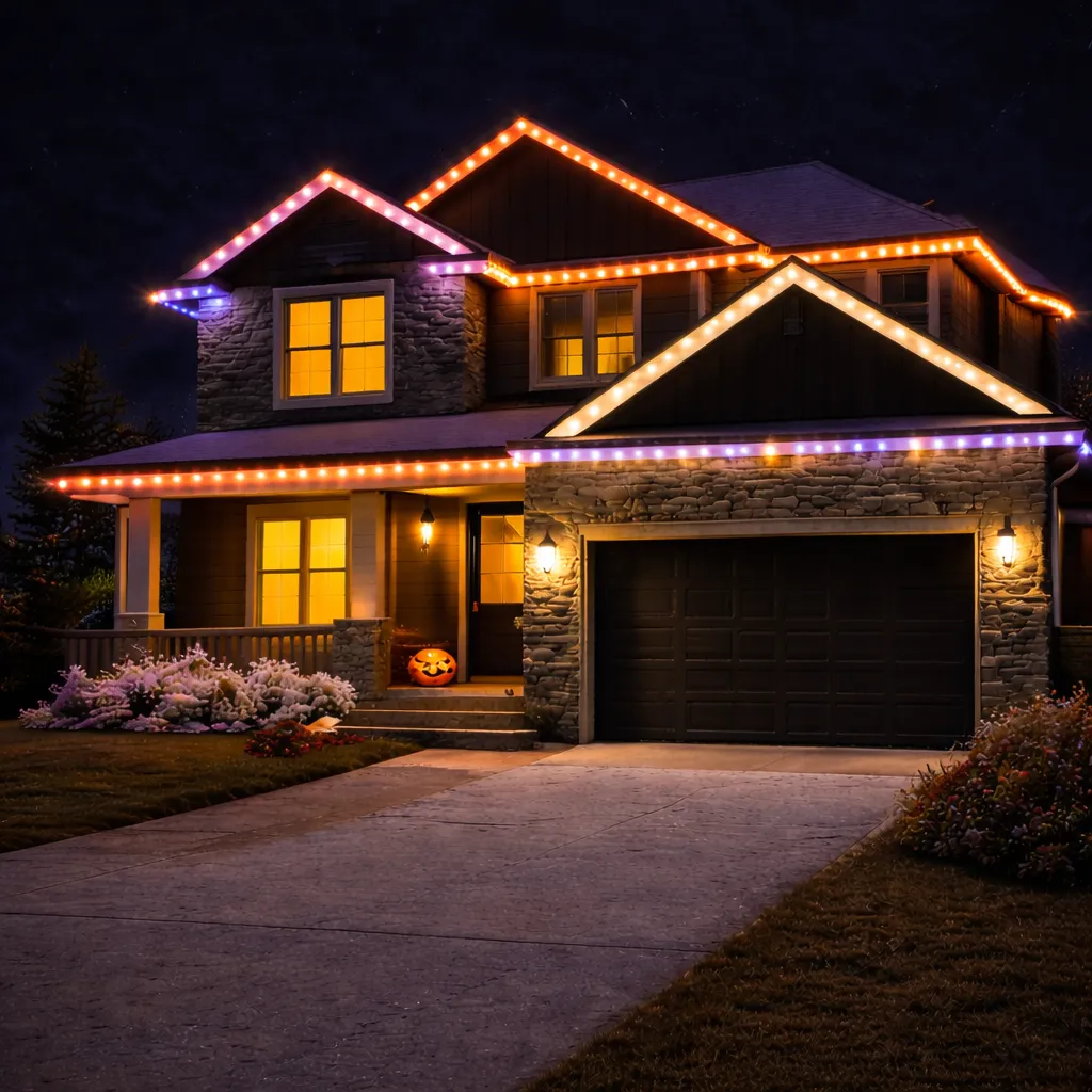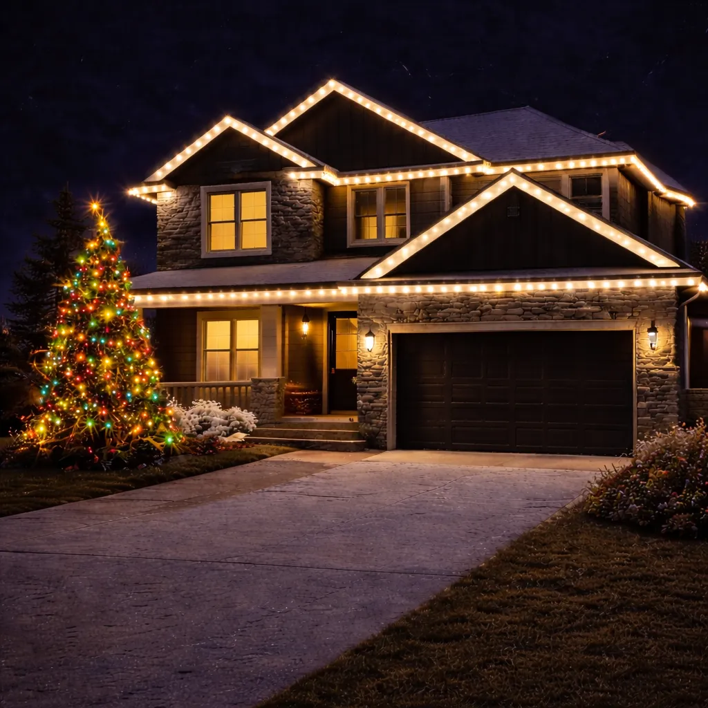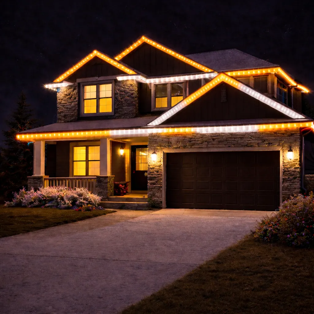 Professional lighting installed discreetly along your roofline transforms your home instantly after sunset.